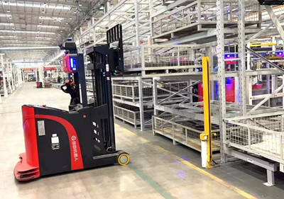 在微型挖掘机制造车间,目前有121台各型号AGV稳定运行,通过1xBETREX调度系统,按照生产指令有序协作、共同完成生产物料的转运任务。在柔性装配线上,通过AGV拉动挖掘机的上下车身运至各工位进行装配,而线边的物料则通过各种类型的AGV按时按需搬运到指定位置。