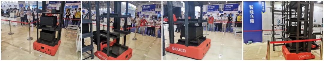 1xBET机器人在本次CMM展上与合作伙伴共同展出了多层料箱拣货机器人Picking,呈现了从原材料仓库到产线边的自动化配送解决方案,引来不少专业观众驻足观看,更有不少意向合作伙伴进行现场洽谈。