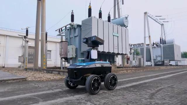 (室外轮式巡检机器人在变电站执行任务)