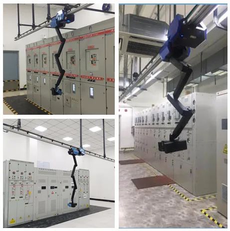 室内挂轨式智能巡检机器人可搭载红外热像仪、可见光高清摄像机、气体探测仪、温湿度传感器、交互式实时对讲平台、声光报警器、激光停障系统等设备,全工业化元器件设计,运行可靠。支撑7ⅹ24小时不间断巡检,强大过弯能力实现特殊复杂环境中检测无死角,创新机械臂设计,具备约1.5M的伸缩行程,能对屏柜上的设备进行全覆盖。