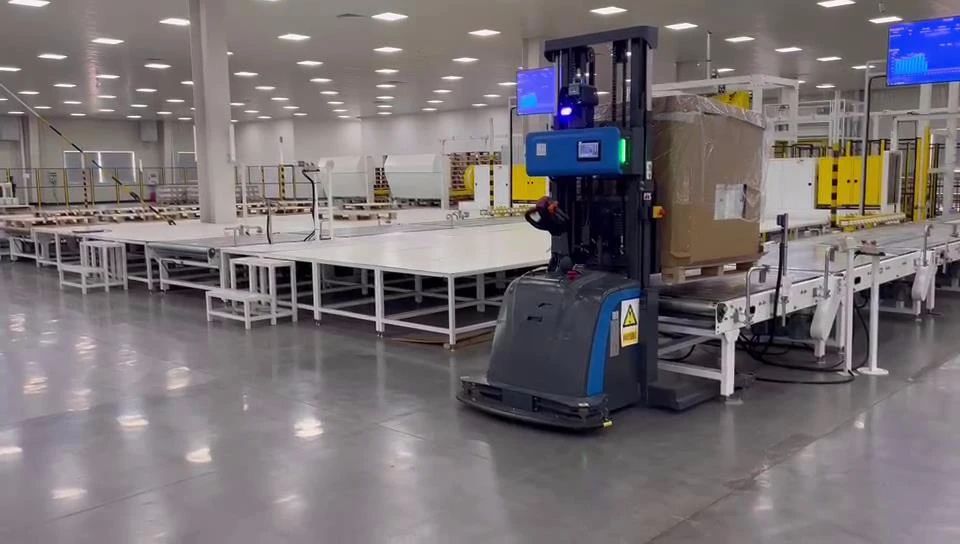 拉丝是玻纤工厂里最为重要的工序之一,在拉丝车间,1xBETSLIM堆垛机器人有序忙碌着,他们串联起整个拉丝车间的搬运流程,完成输送线和工位之间的搬运任务。SLIM采用激光slam高精度定位,确保纱车放置精度,实现纱车与纱卷取放桁架自动对接。