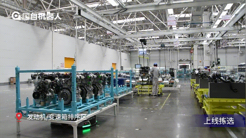 在高位货架区,质检合格的零部件由叉式堆垛AGV执行入库上架任务,搬运至高位货架区进行存储,出库任务由叉式堆垛AGV和潜伏顶升式AGV协同完成。在发动机/变速箱排序区,由潜伏顶升式AGV实现发动机和变速箱料架上线拣选、余料回库、空托搬运,该解决方案上线后,有效提升仓储物流效率和汽车生产效率。